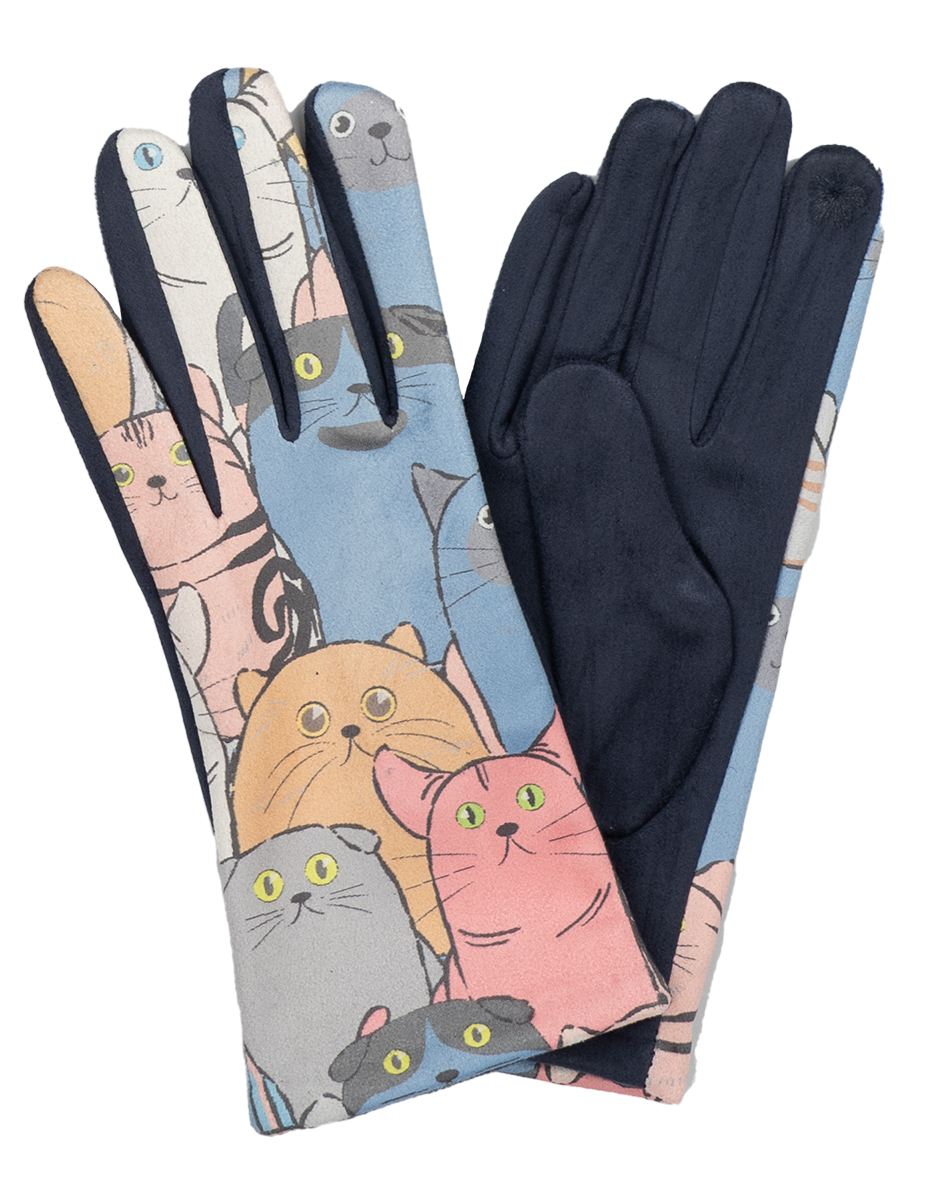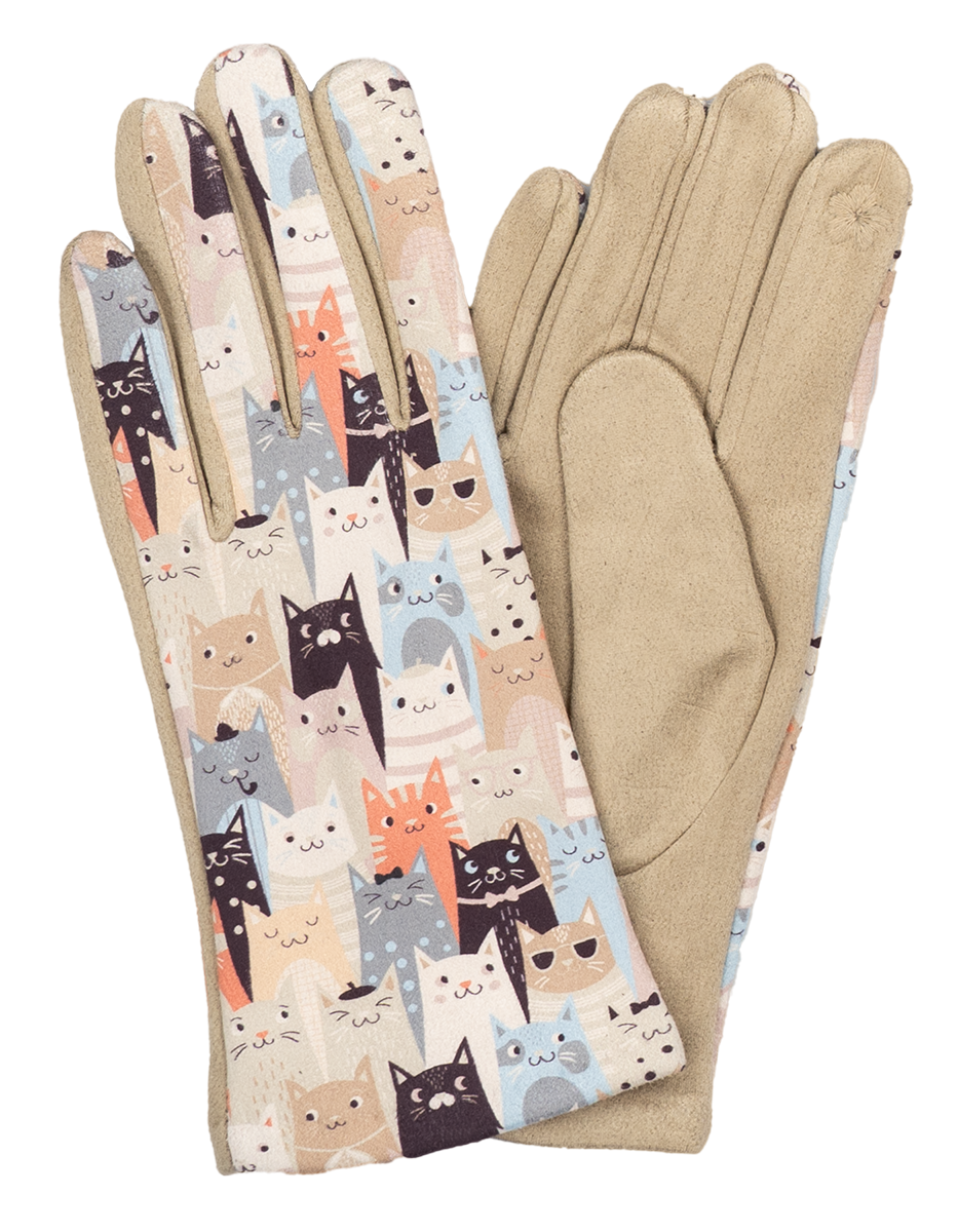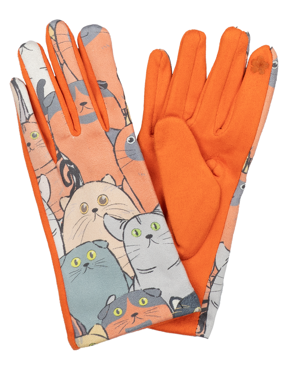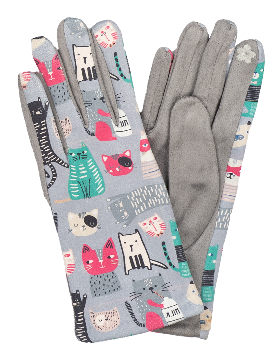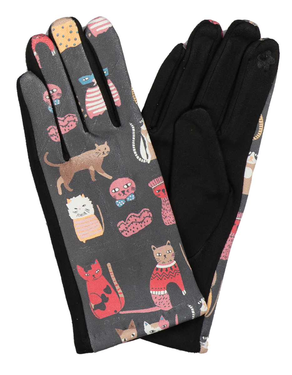 12 Paar Damenhandschuhe Katzenmotiv gut sortiert